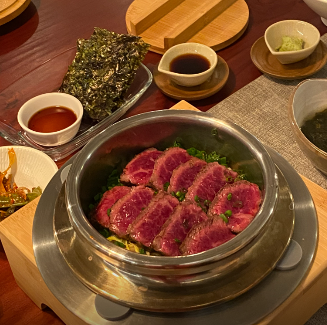 대표메뉴 : 스테이크 솥밥(점심,저녁 각 20개한정), 연어 솥밥, 전복장 솥밥, 표고 멘보샤, 수비드 된장 통삼겹구이