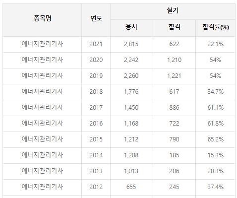 에너지관리기사 실기 합격률 경향