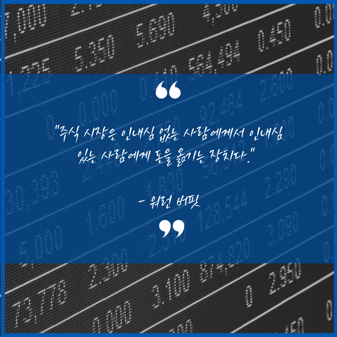 "주식 시장은 인내심 없는 사람에게서 인내심 있는 사람에게 돈을 옮기는 장치다." - 워런 버핏