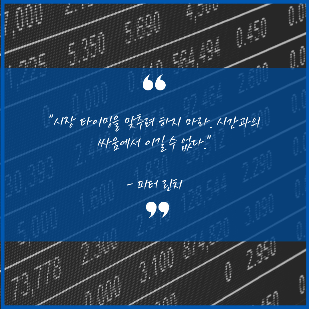 "시장 타이밍을 맞추려 하지 마라. 시간과의 싸움에서 이길 수 없다." - 피터 린치