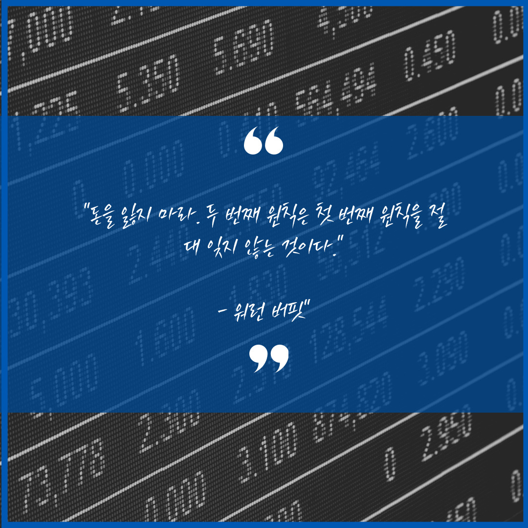 "돈을 잃지 마라. 두 번째 원칙은 첫 번째 원칙을 절대 잊지 않는 것이다." - 워런 버핏